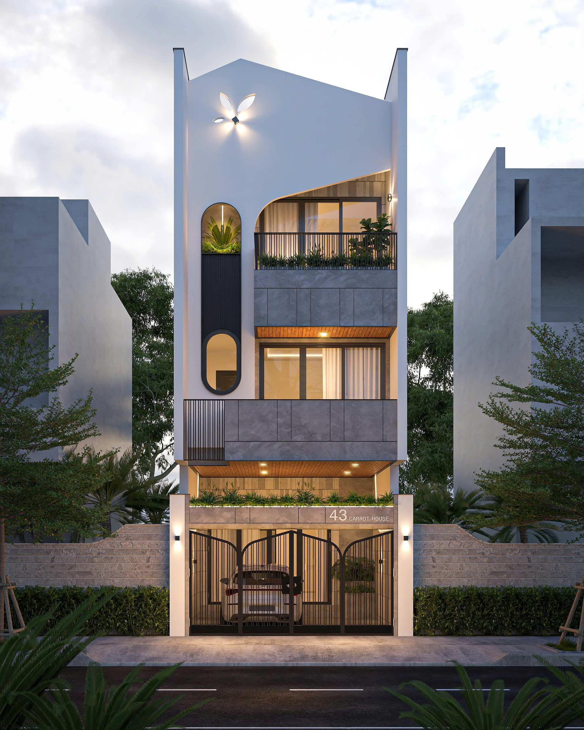 Mẫu nhà phố với tầng thượng phá cách